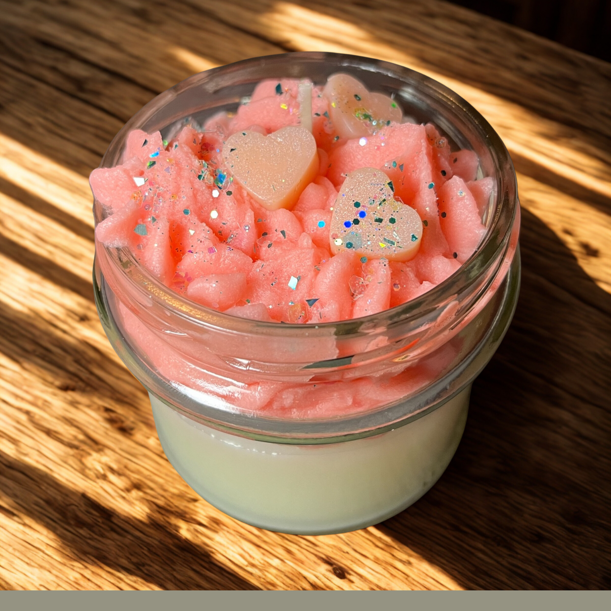 Bougie dans un bocal avec chantilly parfumée, pour une douceur visuelle et olfactive.